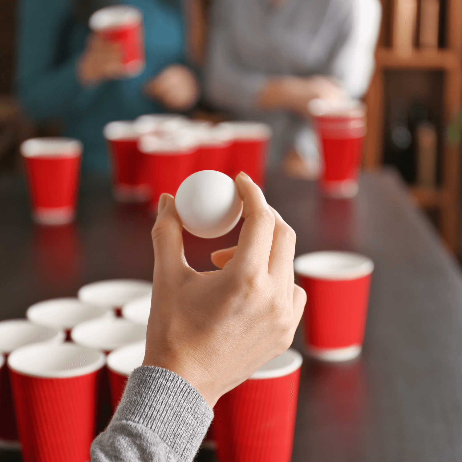 Die Beerpong-Bälle sollten nicht zu leicht sein, da sie sonst schwerer zu werfen sind, aber auch nicht zu schwer, um sicherzustellen, dass sie in den Bechern versinken, wenn sie getroffen werden.