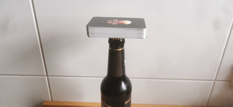 Kartenpusten ist kein gutes Trinkspiel für draußen, denn wenn der Wind weht können die leichten Karten schnell vom Flaschenhals fallen.