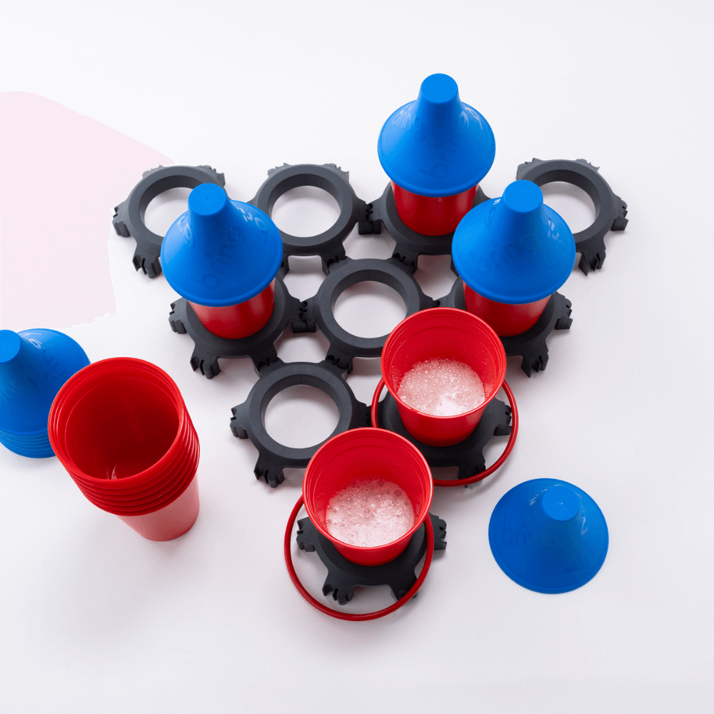 Der Beer Ring ist in verschiedenen Set-Optionen erhältlich, sodass du die ideale Größe für dein Event auswählen kannst – von kompakten Einsteiger-Sets bis hin zu umfassenden Sets für größere Gruppen. Die robusten Becher und Kappen bestehen aus hochwertigem, nachhaltigem Material und sind spülmaschinenfest. Die Kappen verhindern, dass Schmutz in dein Getränk gelangt, und garantieren so ein sauberes und hygienisches Spielerlebnis.