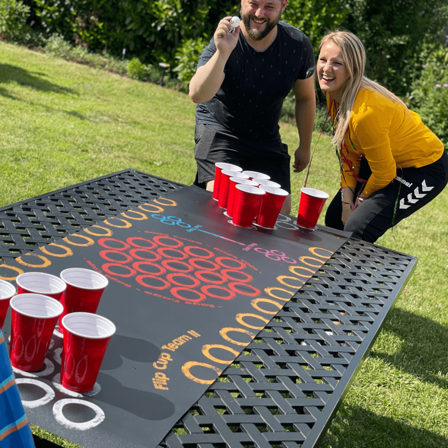 Mit den tragbaren Bierpong Matten kannst du dein Lieblingsspiel an jeden Ort bringen, sei es im Park, am Strand oder bei deinem nächsten Festivalbesuch.