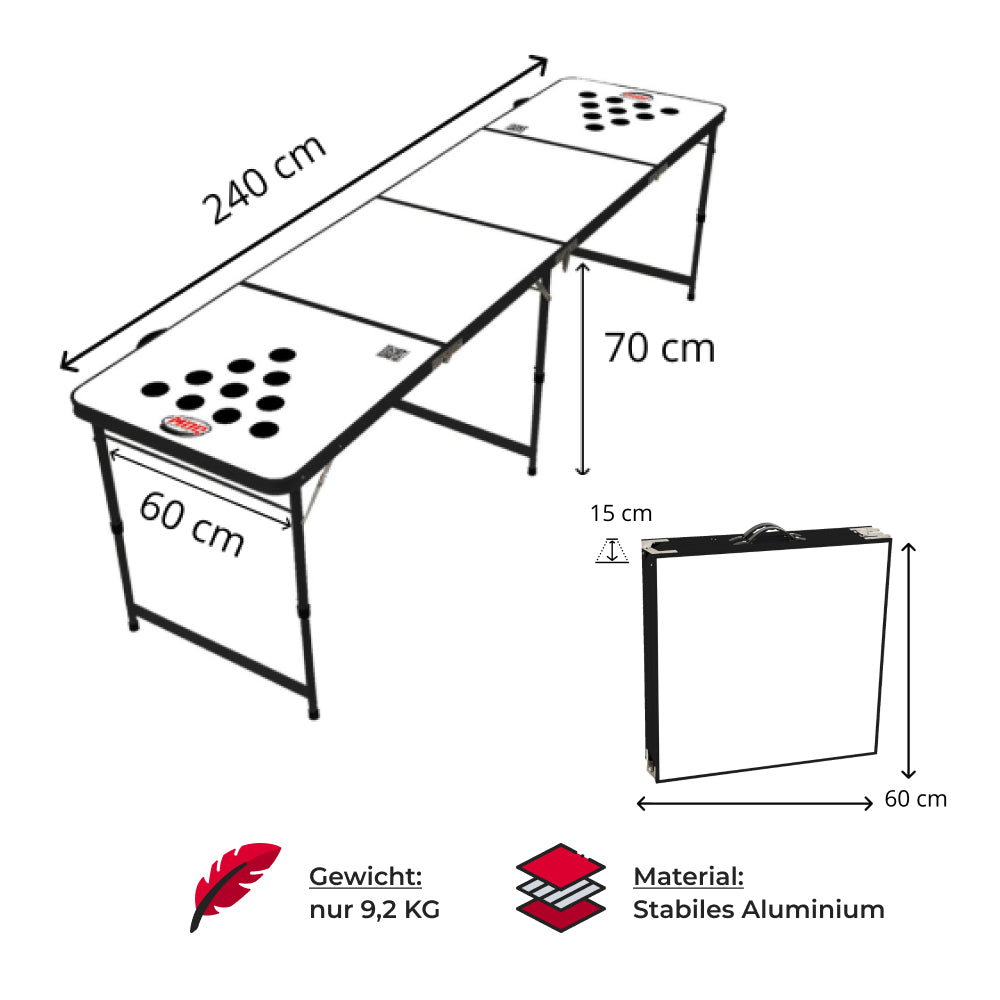 Hergestellt aus leichtem Aluminium und ausgestattet mit klappbaren Eigenschaften sowie praktischen Tragegriffen, ermöglicht es Ihnen, diesen Tisch mühelos überallhin mitzunehmen. Das Highlight: Er lässt sich in nur 30 Sekunden problemlos aufstellen!